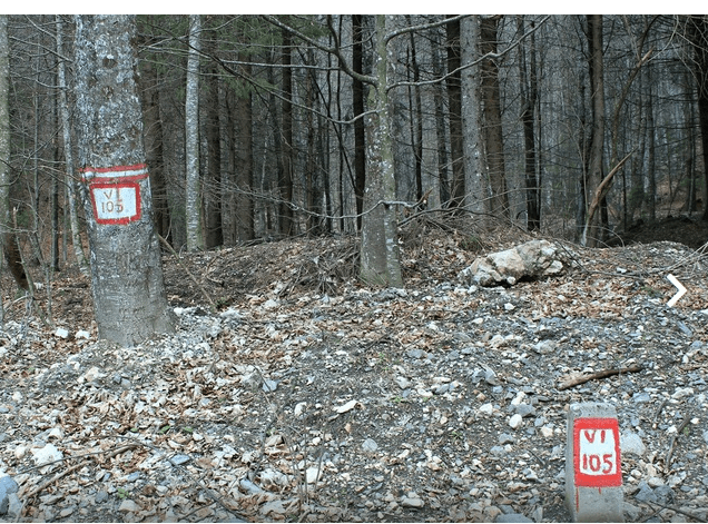 The limit of a homogeneous surface from the perspective of component species, age and vegetation conditions. If you are standing with your back to a subcompartment boundary, you should see the next tree marked with a subcompartment line. So each marked tree carries a subcompartment boundary for each of the directions.