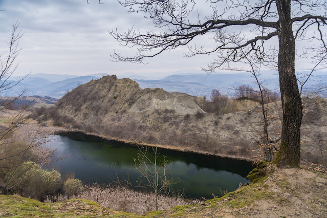 We reached the last stop on the Coldău Valley Educational Route. Here we can see Cetățele Lake. This lake was formed behind a large slide wave that started from the top of Cetățele. The region is made up of Badenian and Sarmatian sediments, predominantly clay-marly, which caused large-scale landslides to occur. The undermining of the left slope of the Ilișua Valley and the lithology of the sediments that make it up, in the conditions of a humid climate, generated these large deplasious and subsequent landslides.
