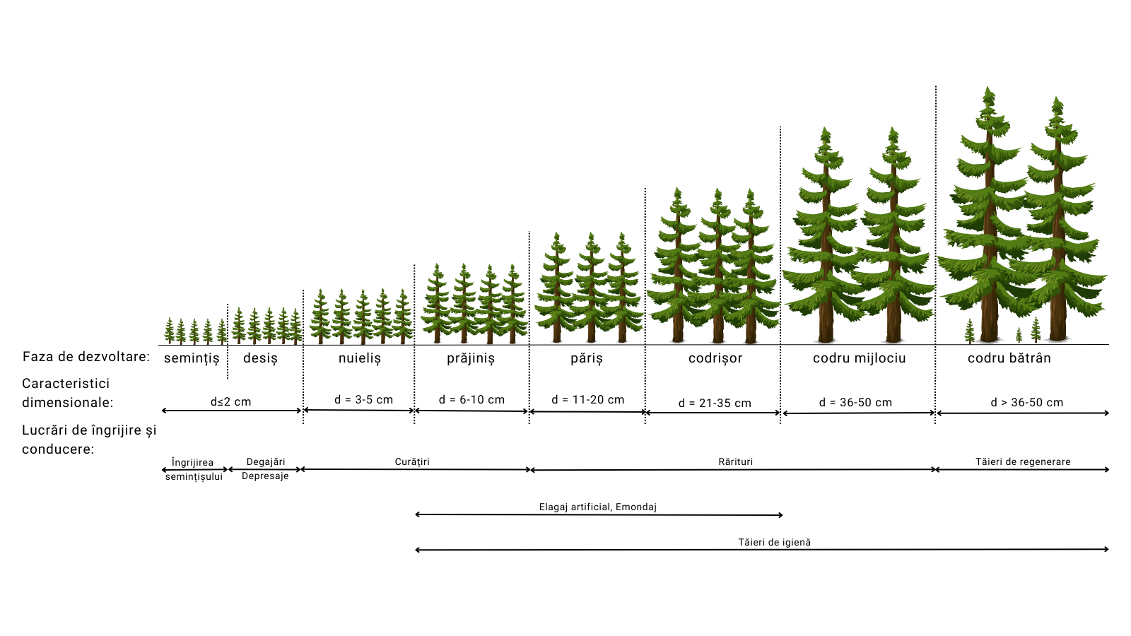 Principalele lucrări de îngrijire și conducere a arboretelor sunt următoarele: