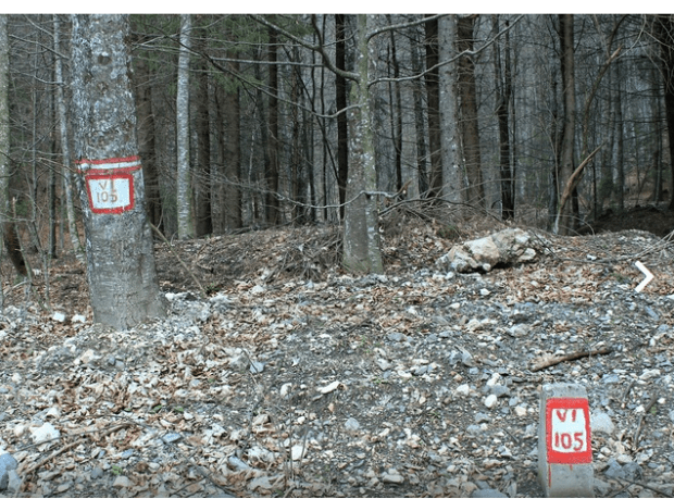 Limita unei suprafețe omogene din perspectiva speciilor componente, a vârstei și a condițiilor de vegetație. Dacă stai cu spatele la o limită de subparcelă trebuie să vezi arborele următor marcat cu linie de subparcelă. Așadar, fiecare arbore însemnat poartă câte o limită de subparcelă pentru fiecare din direcții.